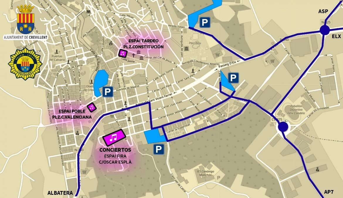 La Concejalía de Espacios Públicos del Ayuntamiento de Crevillent habilita cuatro terrenos como aparcamientos públicos con el objetivo de facilitar el máximo espacio posible el estacionamiento a vecinos y visitantes durante estos días en los que se están celebrando las Fiestas Patronales de Moros y Cristianos.
