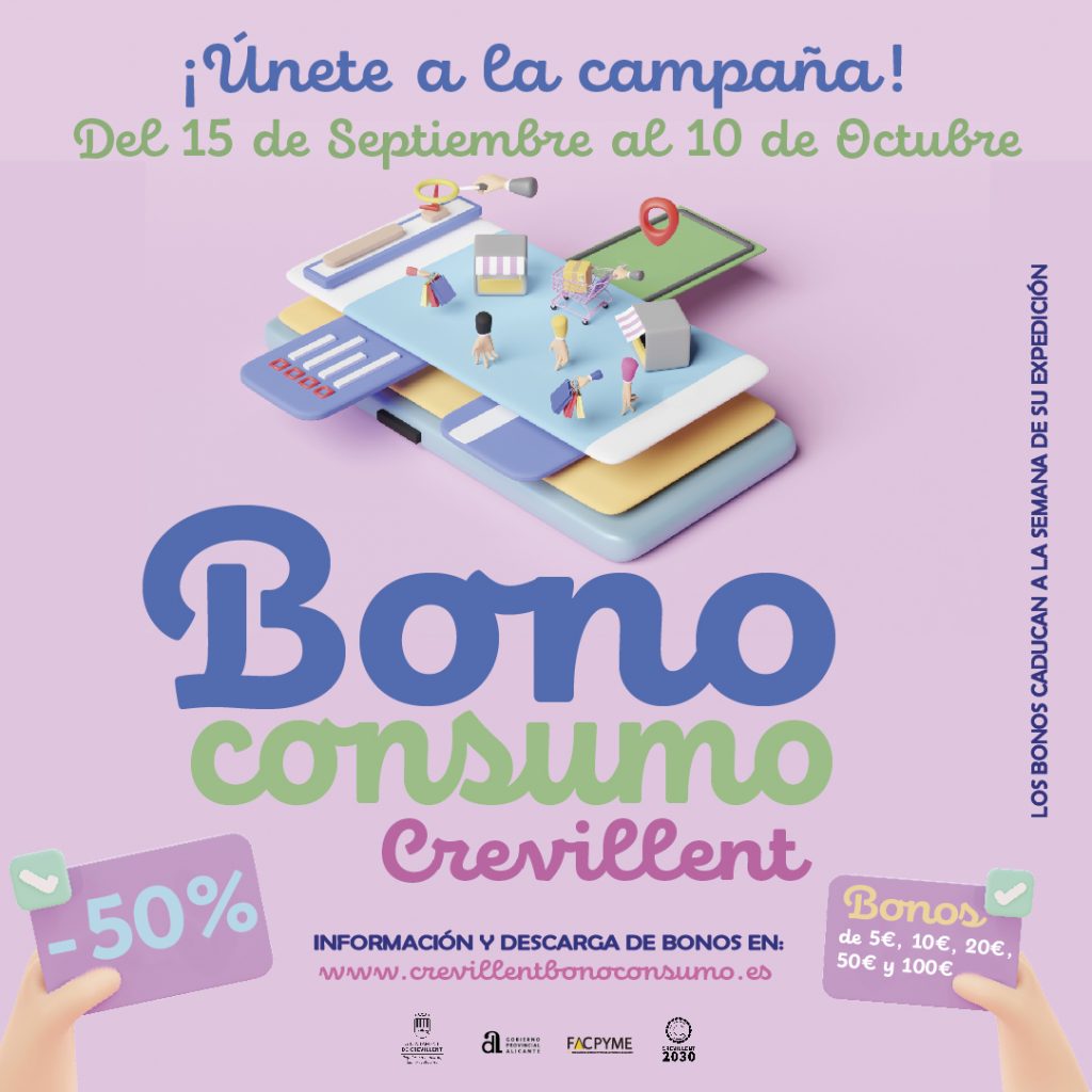 La campaña “Bonos ConsumoCrevillent” cuenta con un importe de 146.052€ financiados por la Diputación de Alicante