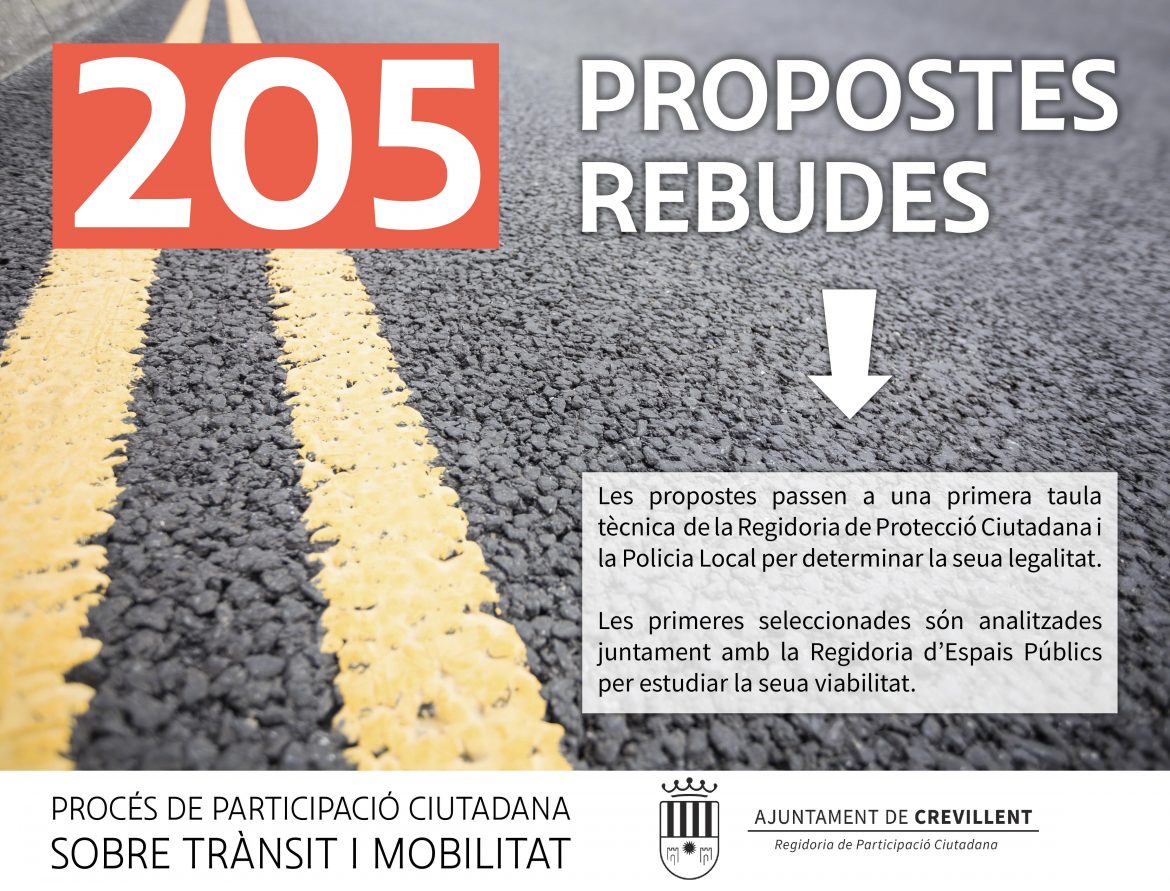 L’Ajuntament de Crevillent, en una aposta per democratitzar la gestió municipal, va posar en marxa el passat mes de febrer un procés participatiu que ha comptat amb una excel·lent acollida per part de les veïnes i veïns de Crevillent. En estos moments, una vegada s’ha completat la recollida de propostes, comença per part de la Policia Local i la Regidoria de Protecció Ciutadana el procés de verificació sobre la viabilitat legal de les suggerències rebudes. Després, es remetran a una segona fase de selecció conjunta amb la Regidoria d’Espais Públics per estudiar la seua viabilitat.