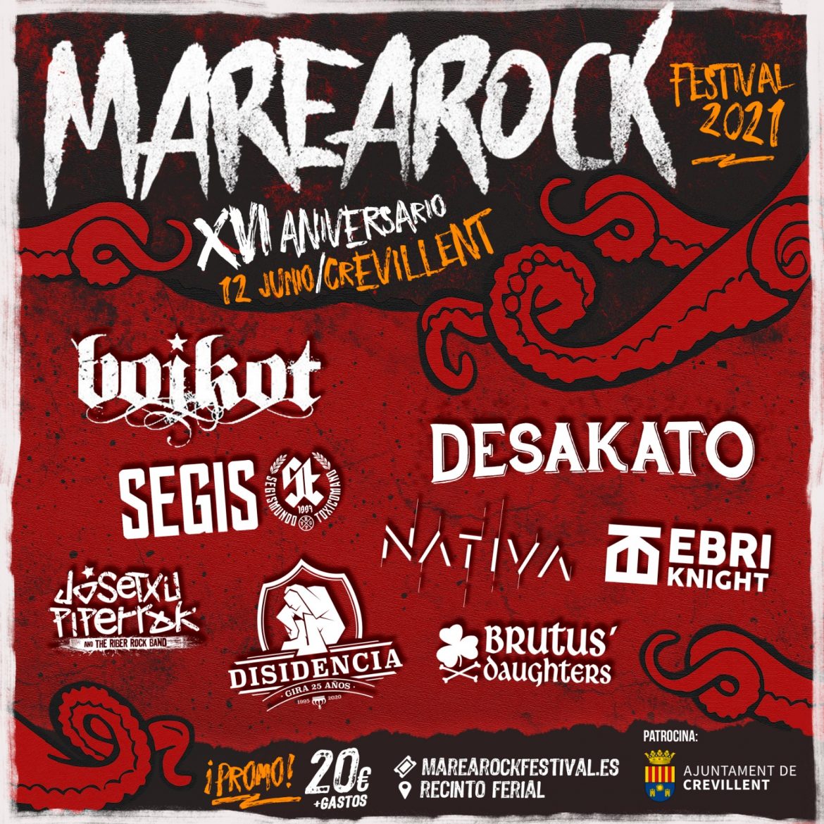 En relació al cartell, es mantindrà la participació dels artistes ja anunciats: Boikot, Desakato, Segismundo Toxicómano, Disidencia Oficial, Josetxu Piperrak & The Riber Rock Band, Ebri Knight, Nativa y Brutus’ Daughters. Les entrades per a aquest esdeveniment ja estan a la venda a través de la web www.marearockfestival.es a un preu de 20€ (+ despeses de gestió) i en els punts de venda habituals.