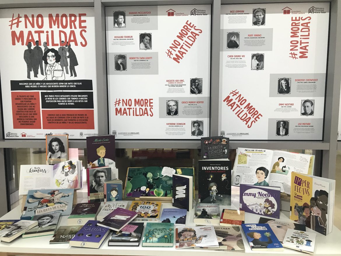 Des del dia 11 al 28 de febrer estarà exposada a la Biblioteca municipal Enric Valor L’exposició #NoMoreMatildas, unint-nos a la celebració del Dia Internacional de la Dona i la Xiqueta en la Ciència