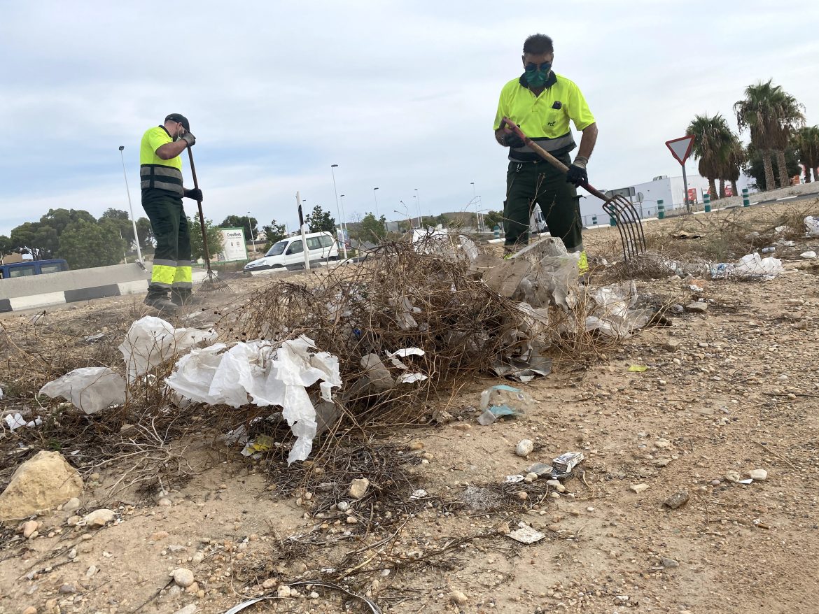 La Concejalía de Servicios Públicos gestiona la limpieza y desbroce de los arcenes colindantes a la carretera N-340 y solicita la colaboración de los comerciantes de la zona para evitar la reaparición y acumulación de plásticos, cartones y otros residuos en la vía pública