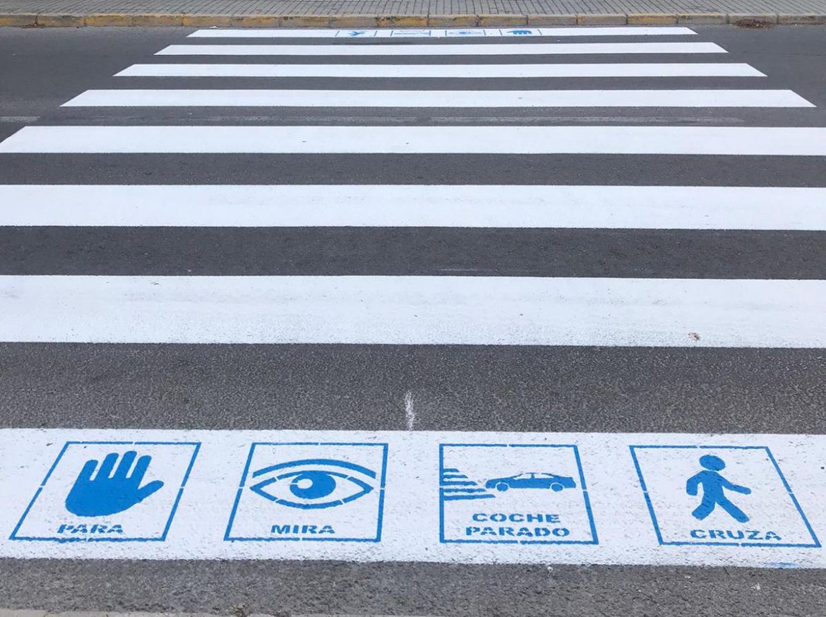 «Para, Mira, Coche Parado, Cruza» son algunas de las palabras que se podrán leer a partir de ahora en los pasos de cebra de Crevillent junto a los cuatro pictogramas instalados con el objetivo de garantizar la visibilidad y la seguridad en los cruces y facilitar el tránsito en las áreas escolares de la localidad, especialmente a los niños y niñas con Trastorno del Espectro Autista (TEA).