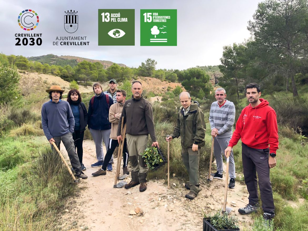 El pasado 17 de diciembre se plantaron 30 coscojas, 30 algarrobos, 30 aladiemos y 30 romeros en la zona de sierra conocida como “Les Ortigues”